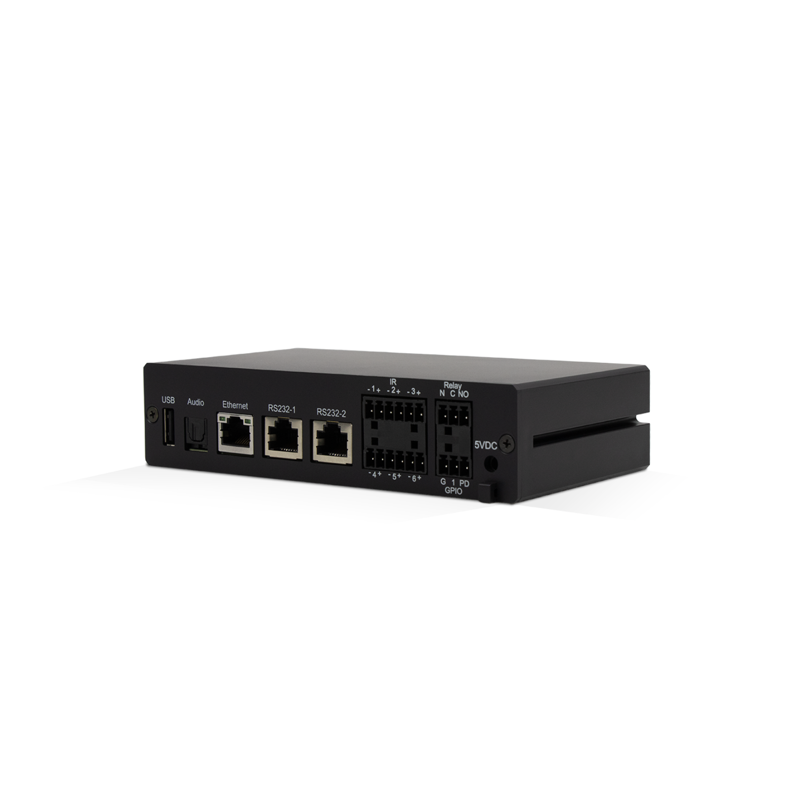 • Puertos de control cableado integrados (IR, RS-232, relés, entradas de contacto)
